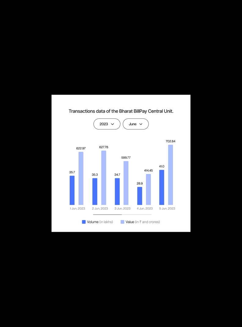 From our research on what stakeholders frequently look for on specific pages, we present them with relevant data and insights at the right time throughout their journey. For the ecosystem statistics page, we visualised a large volume of data spanning crores of daily transactions via graphs and charts. This involved handling dynamic data that is updated on a daily basis. We also visualised customers’ bill payment trends in the ‘Customer Insights’ module.